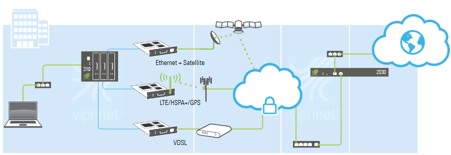 - The unique latency management of Viprinet guarantees that communication channels sensitive in terms of signal propagation time utilize the appropriate media.